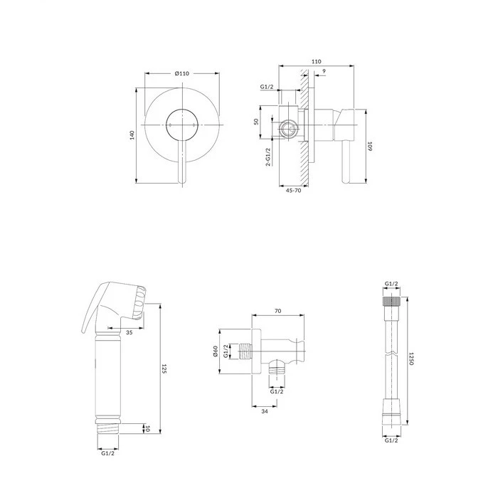 - Тип смесителя гігієнічний набір