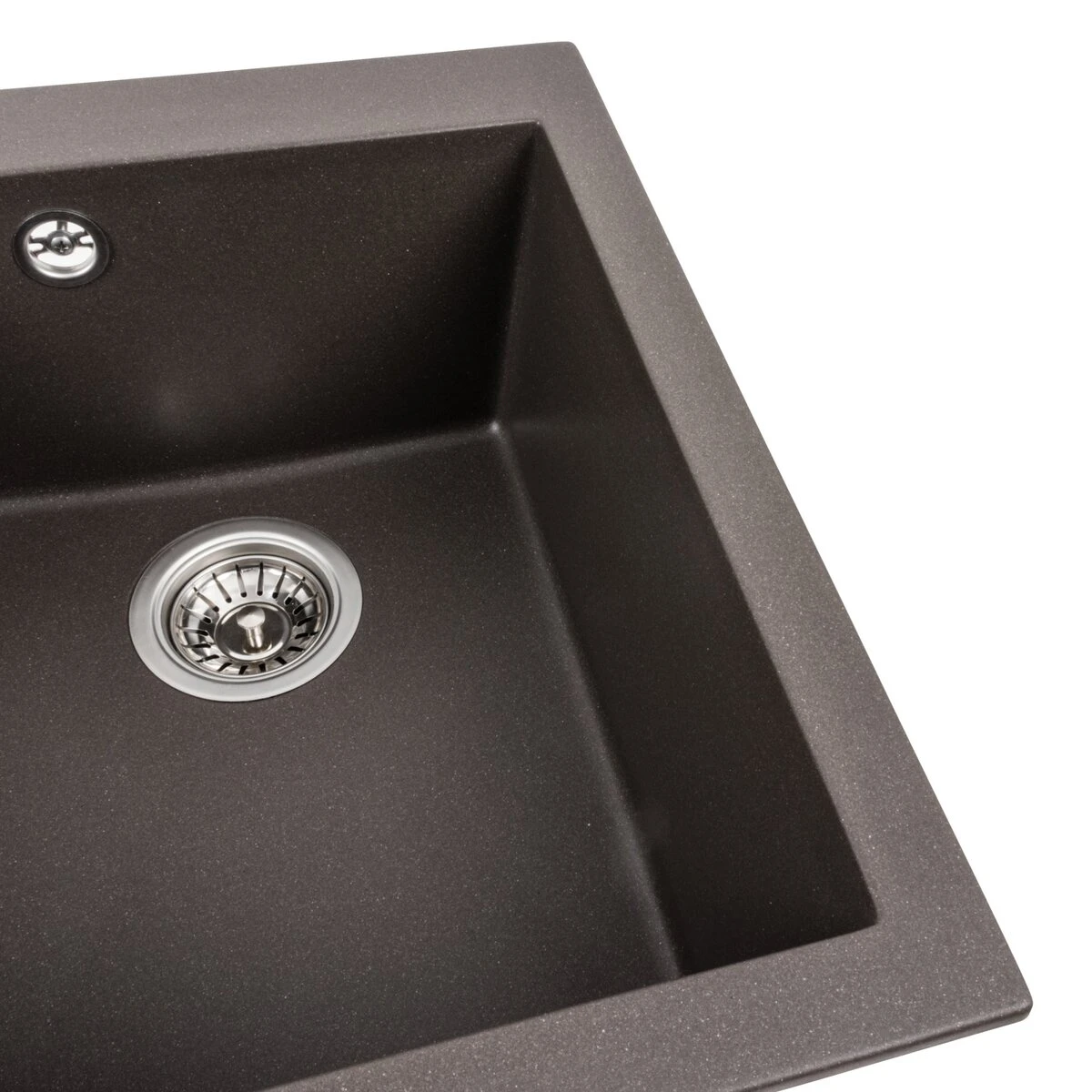 Гранітна мийка для кухні 4150 SOKIL українського бренду VALESO - це стильна, врізна, прямокутна мийка, яка своїм виглядом чудово доповнить дизайн вашої кухні. Мийка на 80% складається з кварцу та на 20% з надзвичайно твердої акрилової смоли, завдяки чому невибаглива у догляді, а також має великий запас міцності.