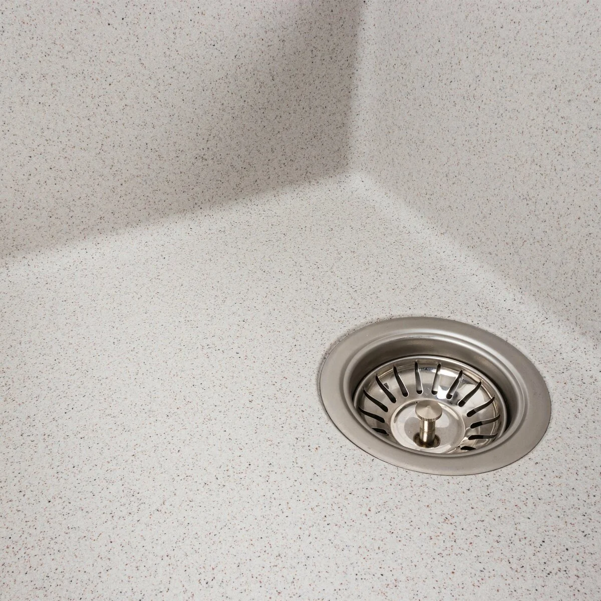 Ця мийка виготовлена за допомогою технології Solid Surface, що гарантує її якість і довговічність. Цей матеріал виготовляється методом лиття, і в ньому поєднуються 80% кварцевого піску та 20% смоли. Візуально він нагадує природний камінь, а його поверхня є теплою і шовковистою на дотик.