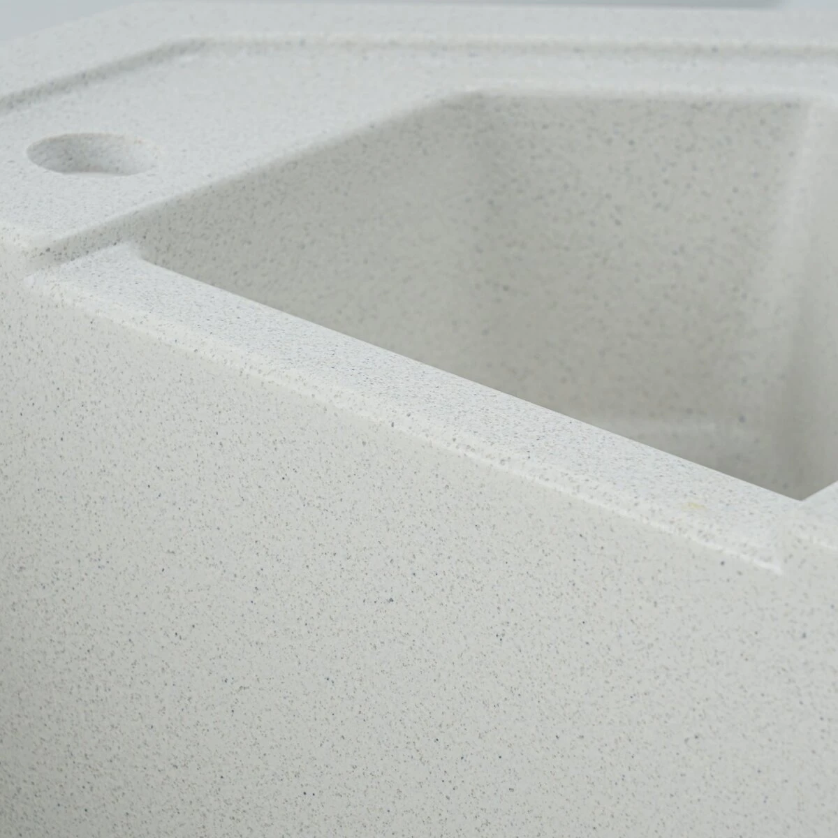 Мийка на 80% складається з кварцу та на 20% з надзвичайно твердої акрилової смоли, завдяки чому невибаглива у догляді, а також має великий запас міцності.