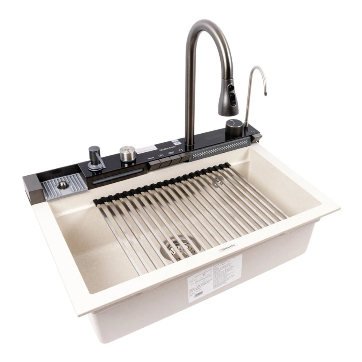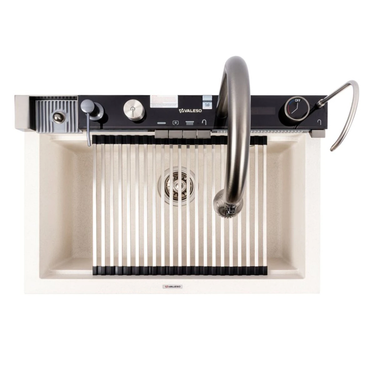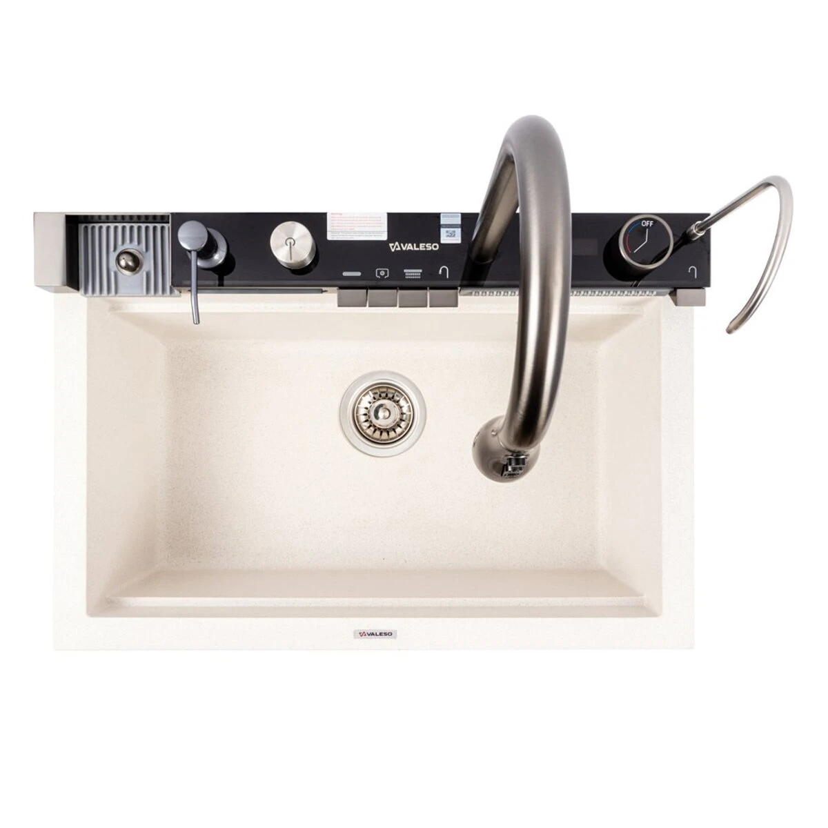 Гранітна матова мийка VALESO IRENA 6846 біла в крапку — це вдале поєднання сучасного дизайну, практичності та повної комплектації. Завдяки розміру 682×460 мм, мийка ідеально підходить навіть для невеликих кухонь.