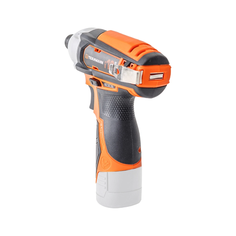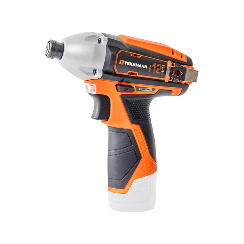 Акумуляторний ударний гвинтоверт Tekhmann TCD-90/i12 потужністю 12 В забезпечує крутний момент до 90 Нм і до 2500 об/хв. Має ¼" HEX-шестигранник для швидкої заміни насадок, реверс, електронне регулювання швидкості, до 3500 ударів/хв та LED-підсвітку. Без «ефекту пам’яті», з індикатором заряду.
