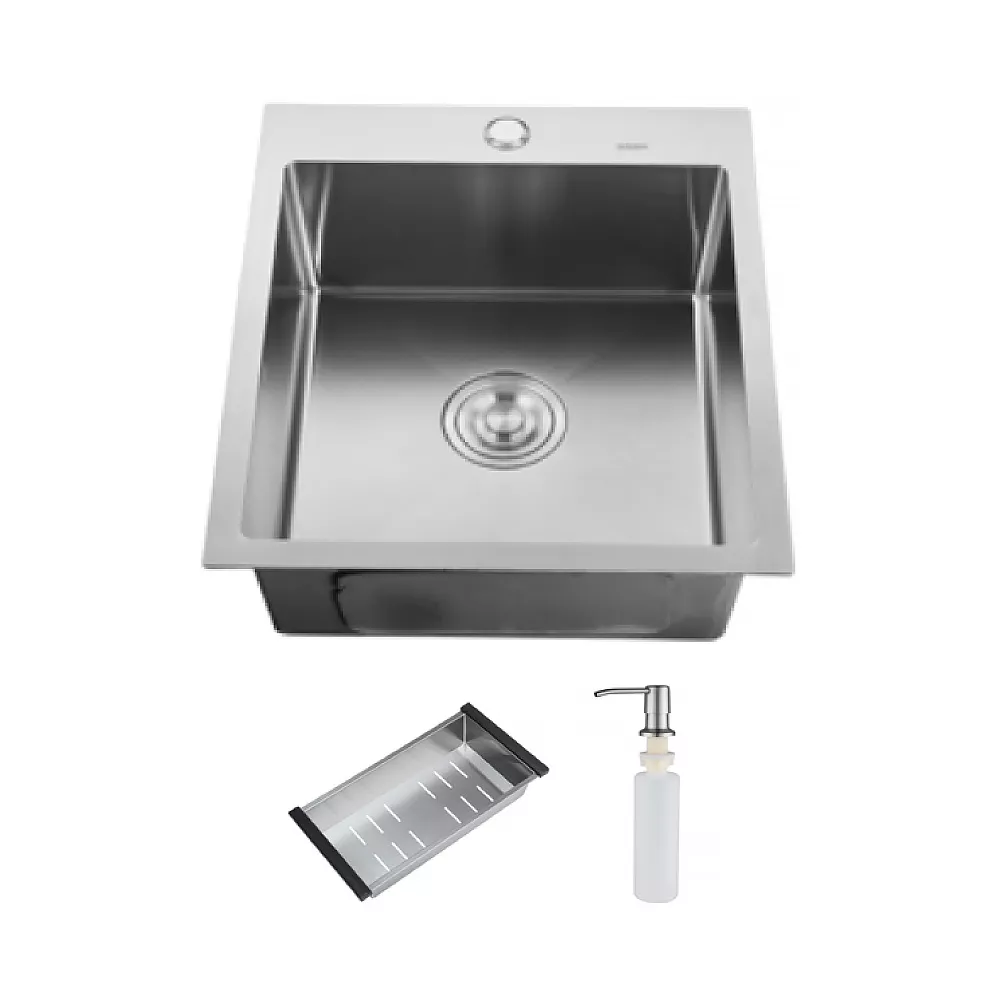 ID 4050 мийка одинар.400x500x215мм (3.0/0.8мм) SUS 304 сифон, дозатор, кошик Satin, {1/1}