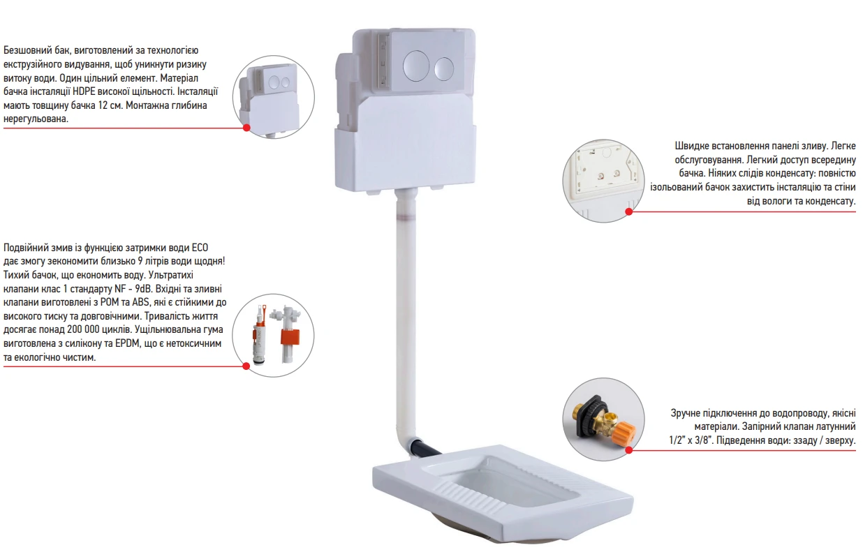- Совместимость Сумісний з панелями змиву: KT-0601, KT-0602, KT-0603, KT-0604