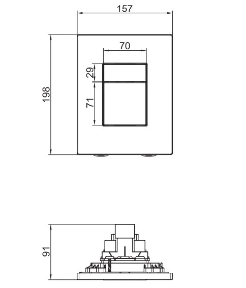 - Комплектация KOER KT-0607-01 Панель змиву пластикова 157x198x3mm, кнопка квадратна (колір хром)