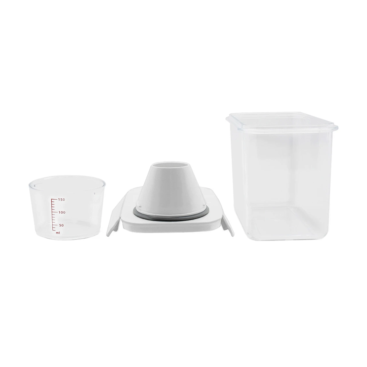 Прозора ємність із кришкою-дозатором — зручне рішення для зберігання круп, макаронів, цукру чи інших сипучих продуктів. Завдяки компактним розмірам вона легко поміщається в шафі або на полиці, а прозорі стінки дозволяють бачити вміст. Кришка з дозатором забезпечує акуратне та зручне використання без розсипання.