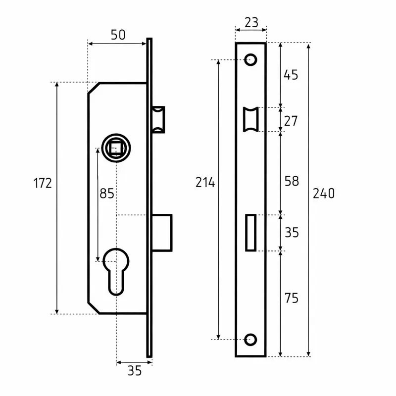 - Ширина язычка 35 мм — усиленный прижим и стабильная фиксация двери.