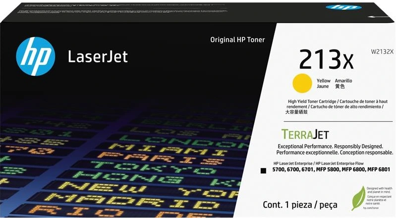 Оригінальний жовтий тонер-картридж HP 213X (W2132X) з високою продуктивністю — до 6000 сторінок за стандартом ISO/IEC 19798 при 5 % заповнення. Ідеальний вибір для офісів із великим об’ємом друку.
