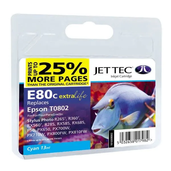 Картридж JetTec для Epson Stylus Photo P50/PX660/PX720WD аналог C13T08024010 Cyan (110E008002)