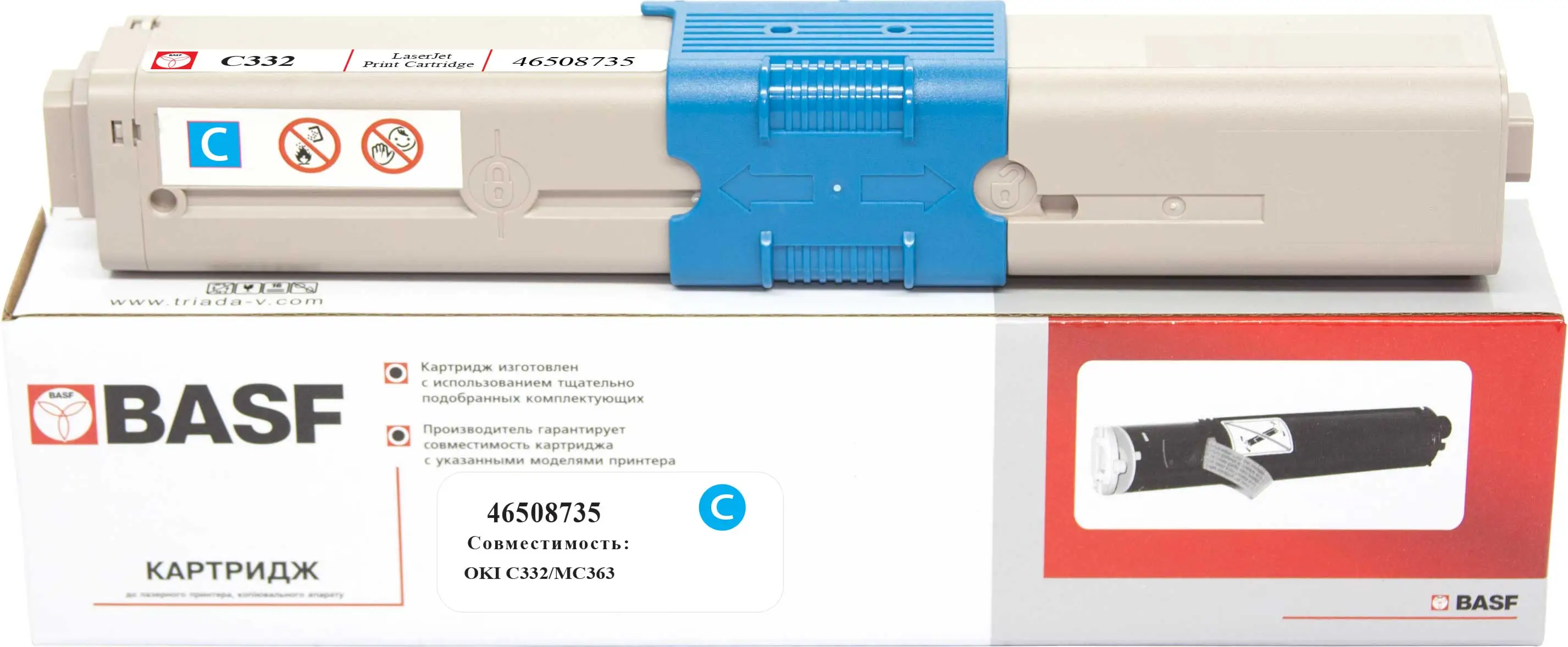 Картридж тон. BASF для OKI C332/MC363 аналог 46508735 Cyan ( 3000 ст.) (BASF-KT-46508735)