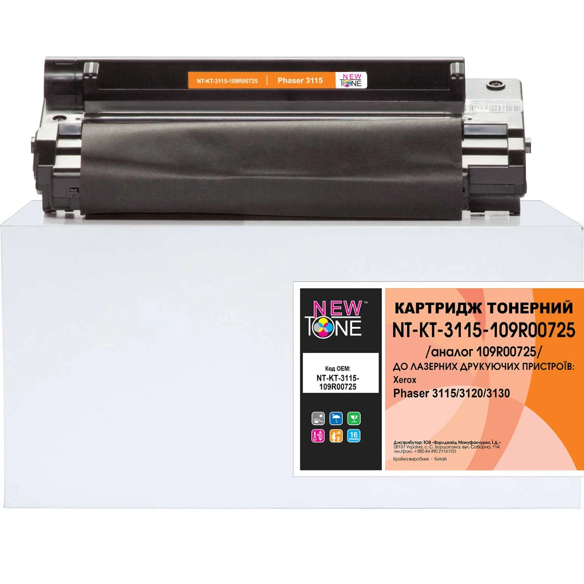 Картридж тон. NEWTONE для Xerox Phaser 3115/3120/3130 аналог 109R00725 Black ( 3000 ст.) (NT-KT-3115