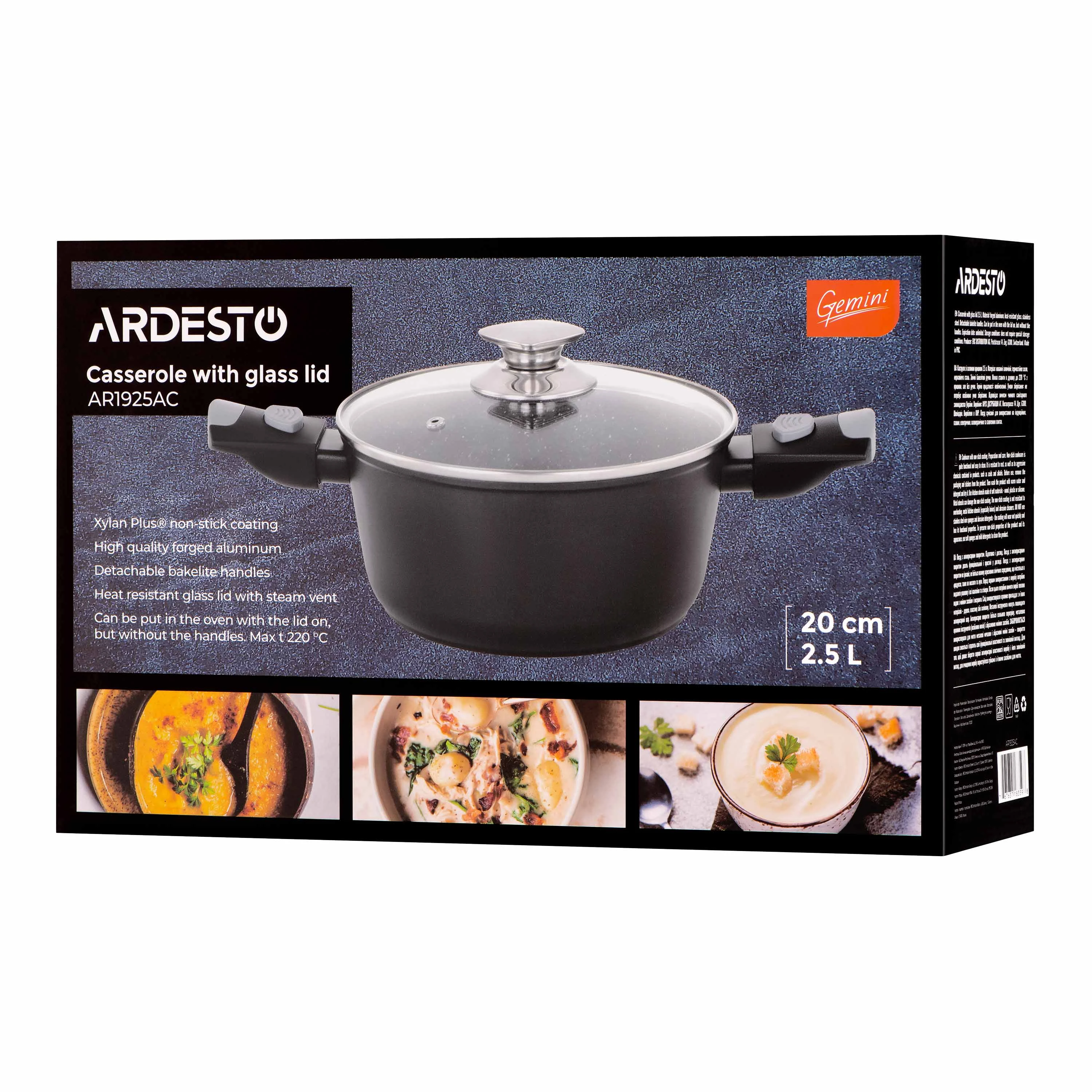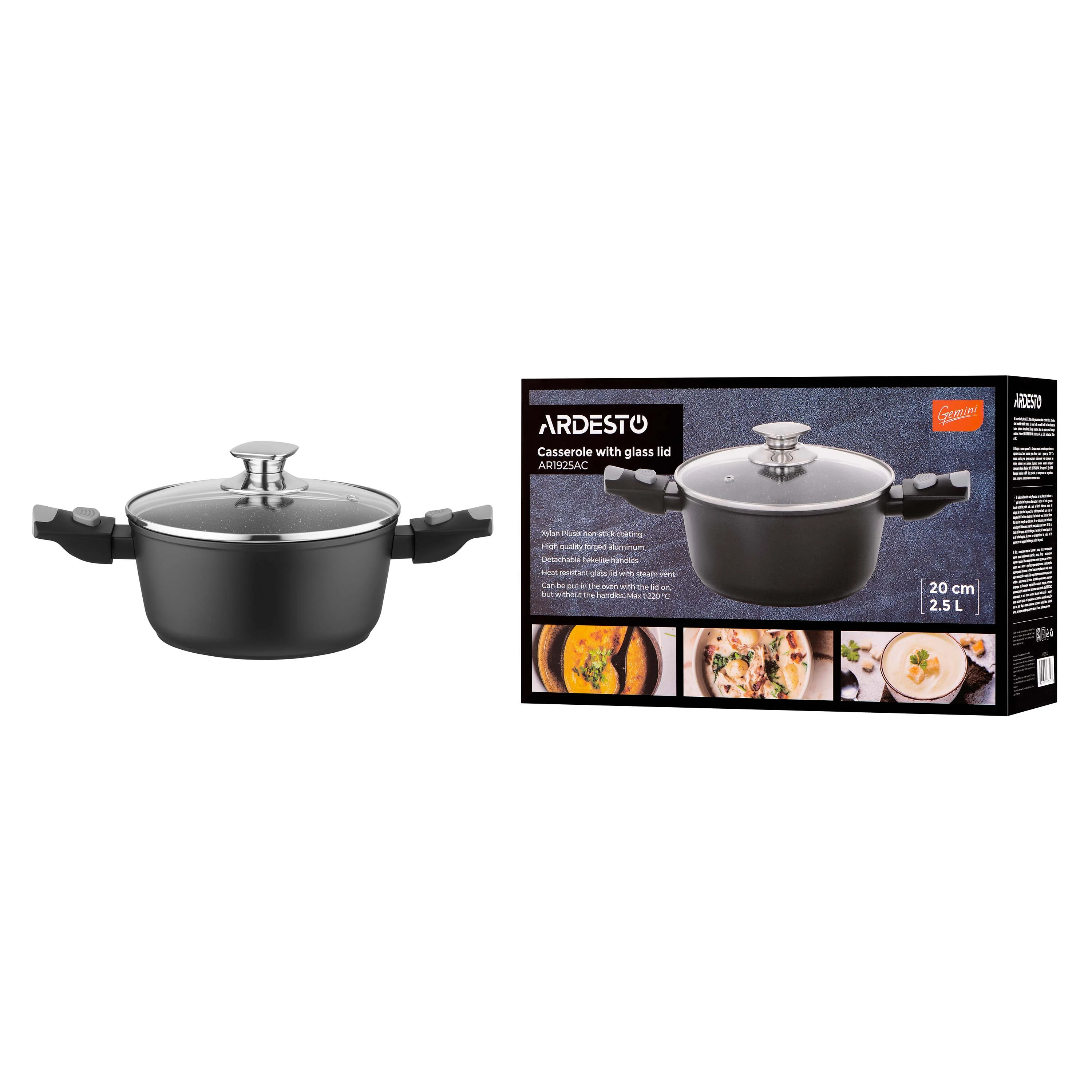 Каструля зі скляною кришкою ARDESTO Gemini Bari, 2.5л, алюміній, чорний