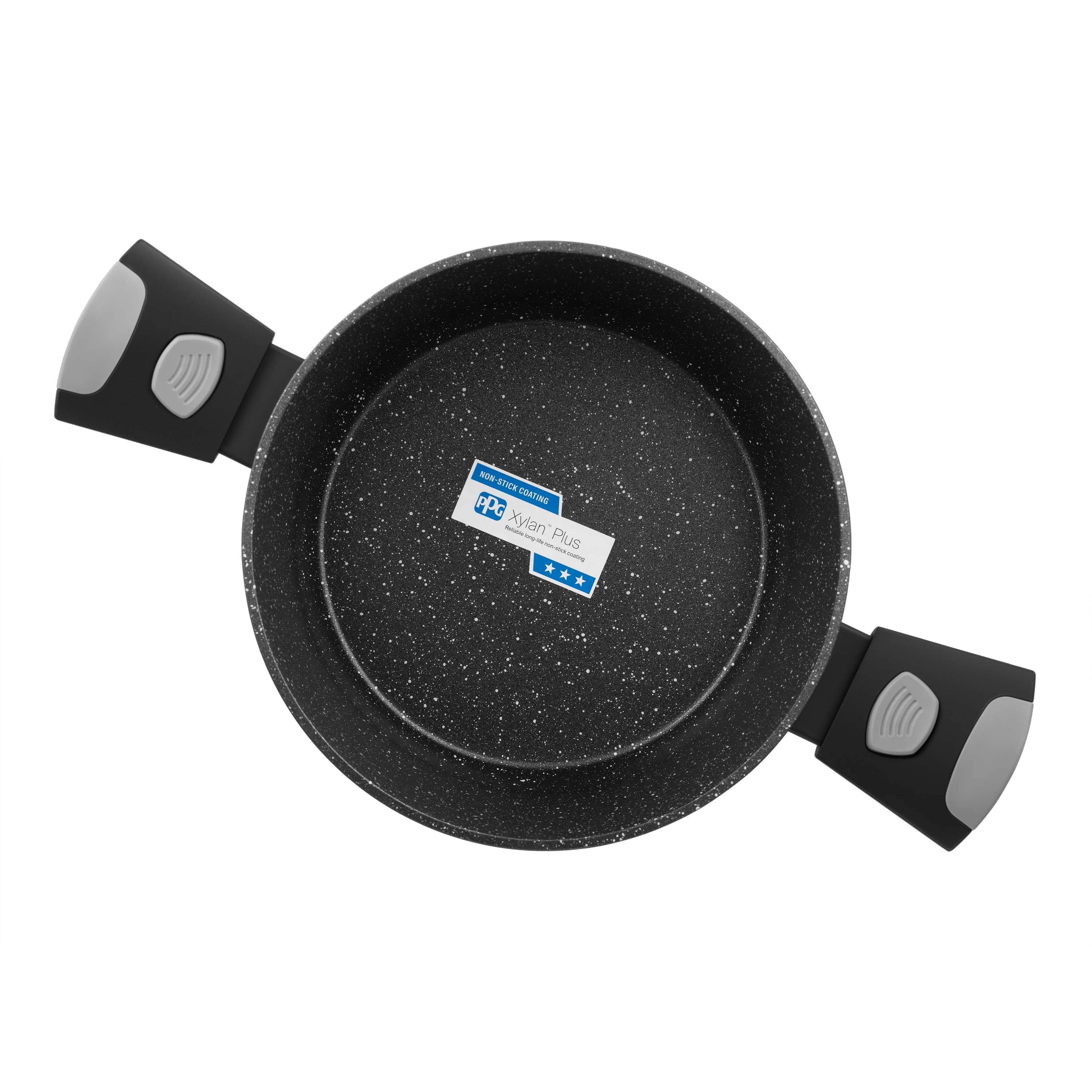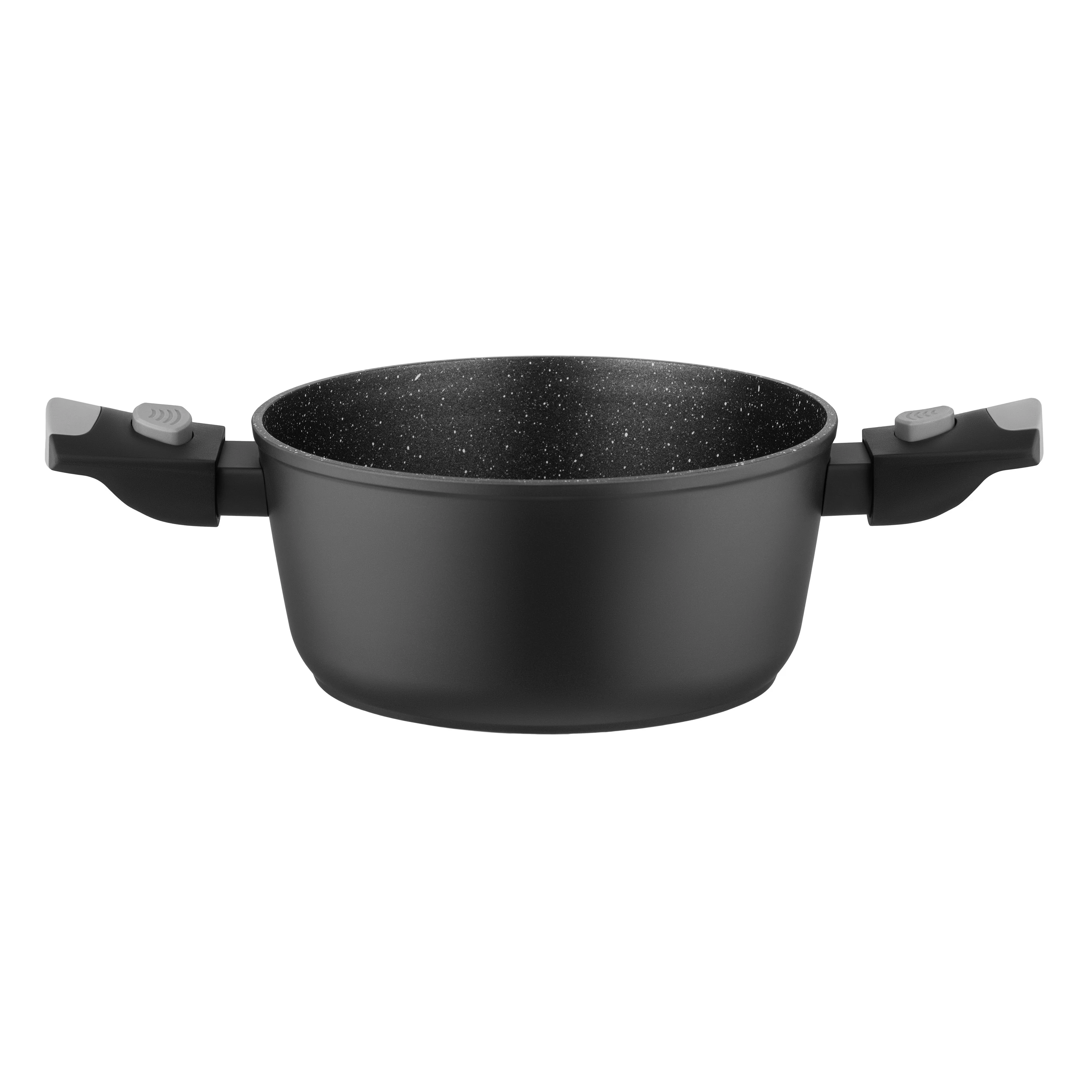 Каструля Gemini Bari глибокого чорного кольору є компактною та функціональною. Об’єм 2,5 л, діаметр 20 см, товсте дно (4 мм) і стінки (2,6 мм) забезпечують стабільне нагрівання, а двошарове мармурове покриття Xylan Plus зменшує ризик пригорання. Матеріал виготовлення – кований алюміній, який витримує інтенсивне використання. Бакелітове руків’я можна легко зняти перед запіканням у духовці (до 220 °C), а термостійка скляна кришка з отвором для пари дає змогу контролювати процес без втрати тепла. Каструлю можна використовувати з усіма типами плит – від газових до індукційних. Виріб легко очищувати в посудомийній машині, тож він є зручним для щоденного використання без зайвих обмежень.