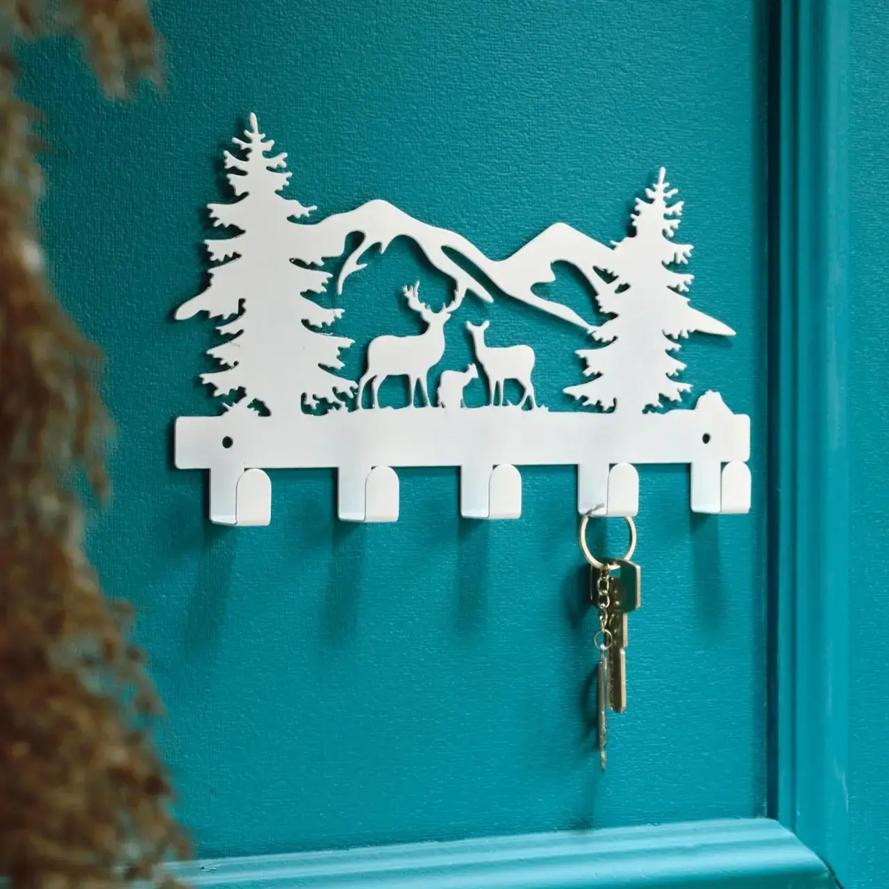 Ключница настенная металлическая, 27х15.5см, Цвет «белый», лес на 5 крючков