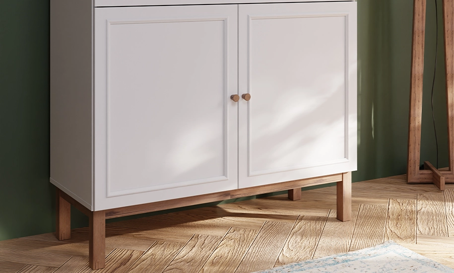 - Конструкція виконана з ламінованого ДСП та МДФ, стійких до щоденних навантажень.