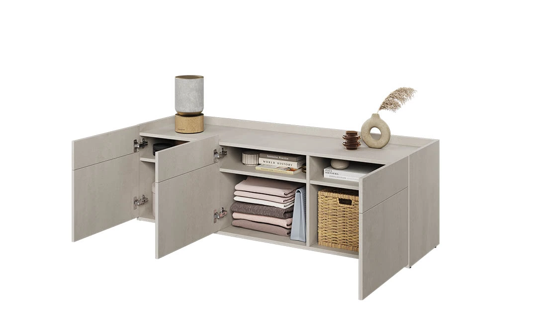 Трьохдверний комод Тін Флекс - це стильний та функціональний елемент для вашого інтер'єру, який поєднує в собі сучасний дизайн і практичність. Завдяки використанню високоякісних матеріалів та уважній увазі до деталей, цей комод стане не лише невід'ємною частиною вашого приміщення, але і функціональним рішенням для зберігання.