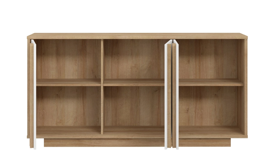 Комод 3-дверний Sandoval SNOK231 вирізняється елегантним поєднанням відтінків дуба рів’єра та дуба сніжного. Комод обладнаний трьома дверцятами, за якими розташовані полиці для організованого зберігання речей.