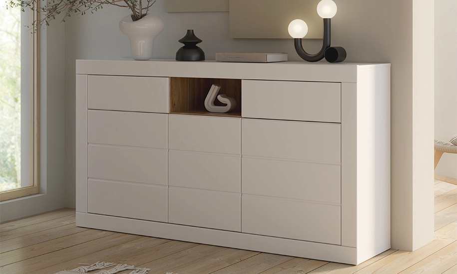 Комод Лефкада поєднує в собі сучасний мінімалізм та практичність, створюючи зручне місце для зберігання з акцентом на естетику.