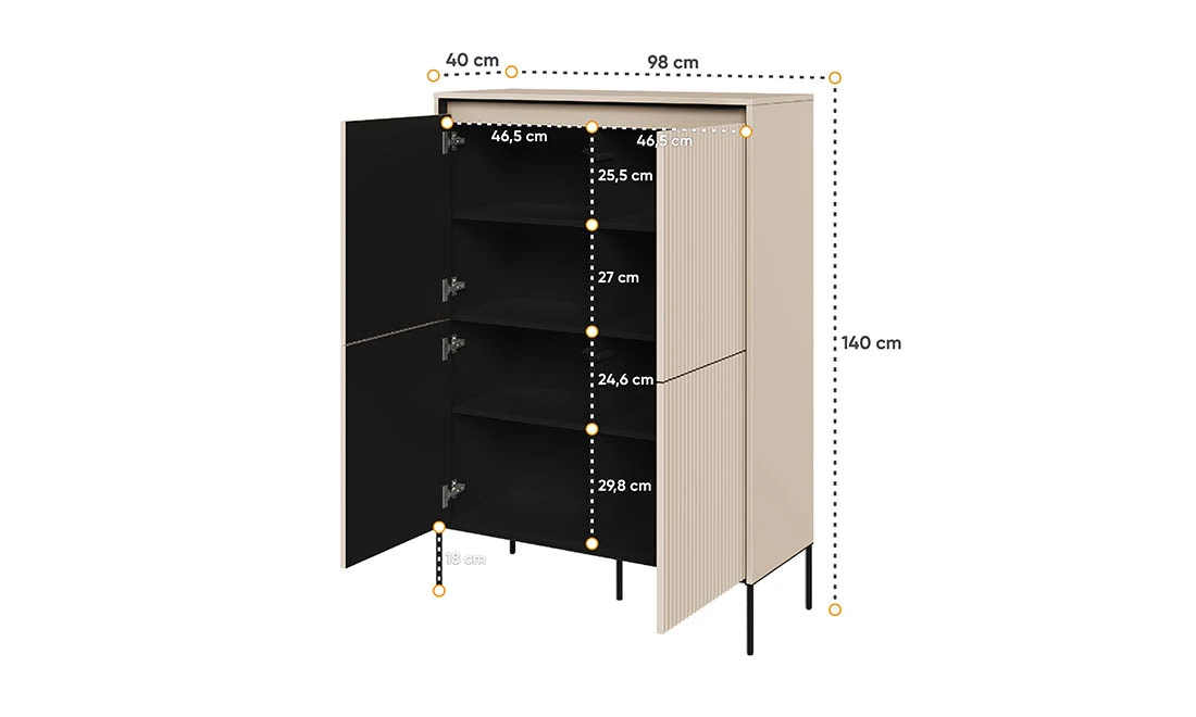 Комод 4д Тренд високий бежевий/чорний з підсвіткою