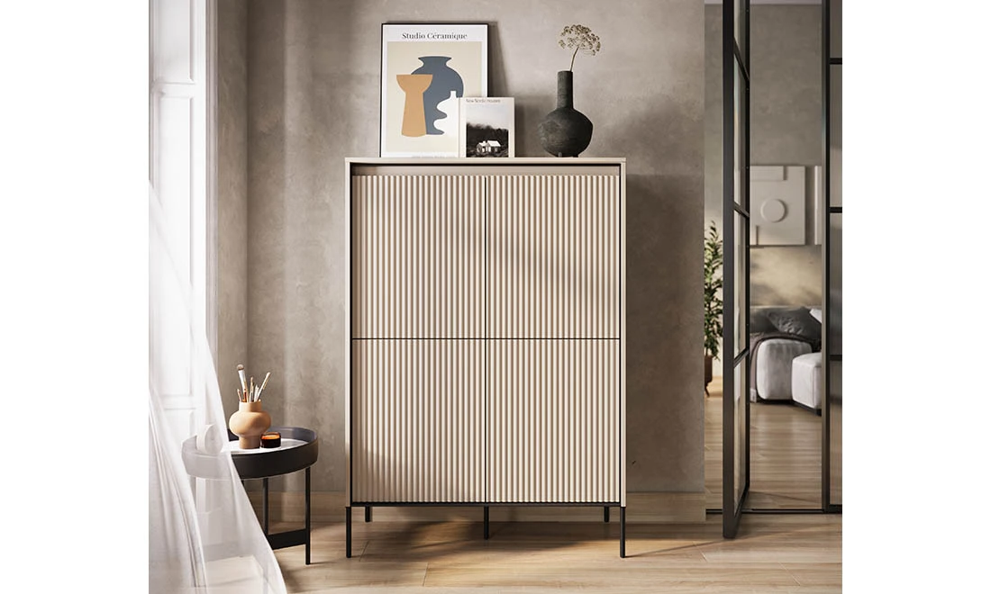 Комод Тренд у бежевому кольорі - це елегантний та стильний елемент інтер'єру, який поєднує в собі модний дизайн та функціональність.