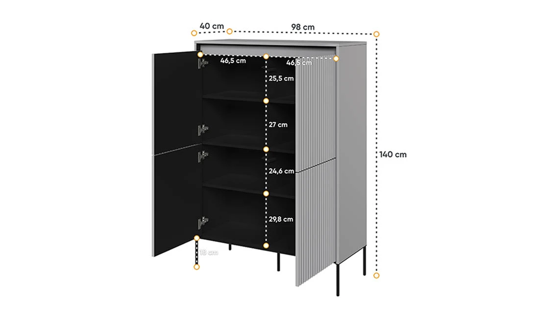 Комод 4д Тренд високий сірий/чорний з підсвіткою