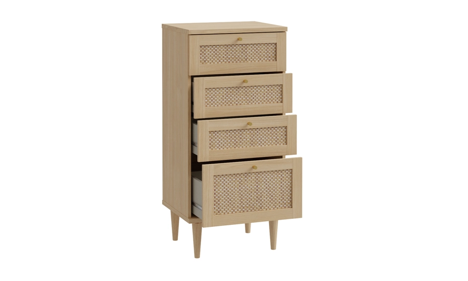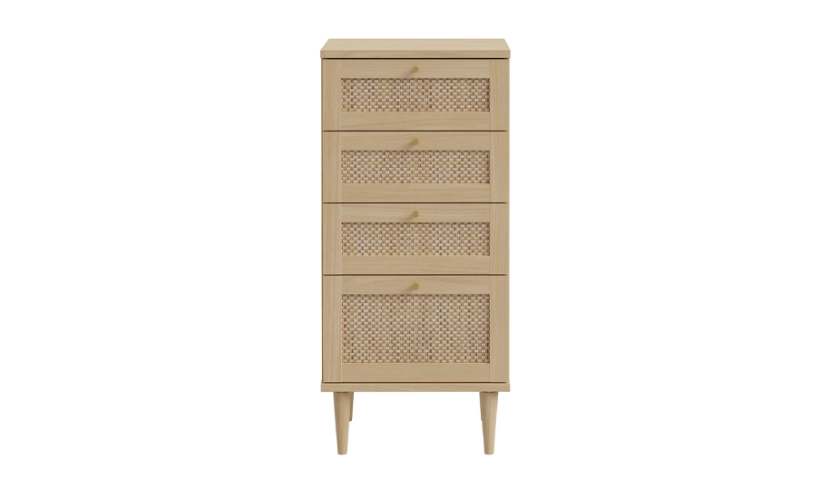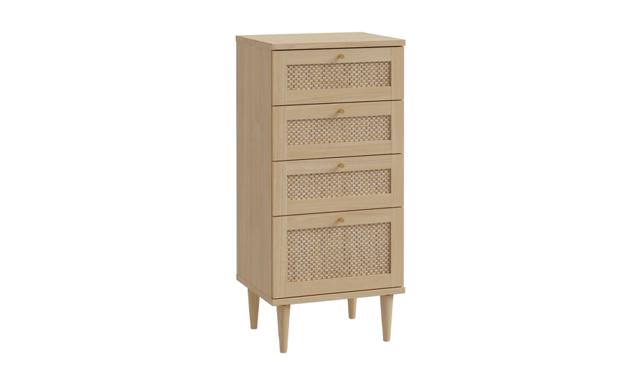 Комод 4ш Calasetta CQSK311 вирізняється природним дизайном та теплими відтінками дуба Елеганс, які гармонійно поєднані з ротанговими вставками. Завдяки такому поєднанню модель виглядає легкою та виразною, створюючи відчуття натуральності у сучасному просторі.