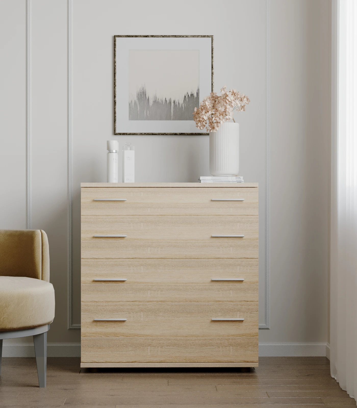 Шукаєте ідеальне рішення для організації вашого простору? Комод Еверест К-2 стане вірним помічником у зберіганні постільної білизни та інших дрібниць. Його стильний дизайн у кольорі дуб сонома легко впишеться в будь-який інтер'єр, додаючи нотку елегантності та затишку. Високоякісні телескопічні механізми забезпечують легкість у використанні та довговічність, що робить цей комод не лише красивим, а й практичним.