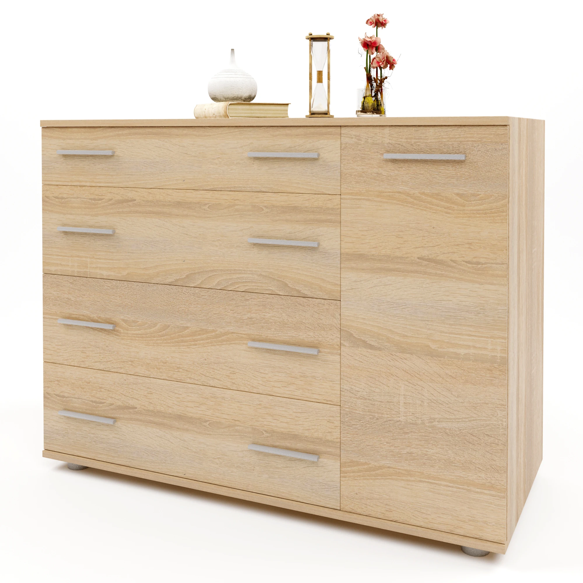 Шукаєте ідеальне рішення для зберігання речей у спальні? Комод Еверест з 4-ма ящиками стане відмінним вибором для тих, хто цінує стиль і практичність. Завдяки своєму сучасному дизайну та елегантному кольору дуба сонома, цей комод легко вписується в будь-який інтер'єр, додаючи йому вишуканості.