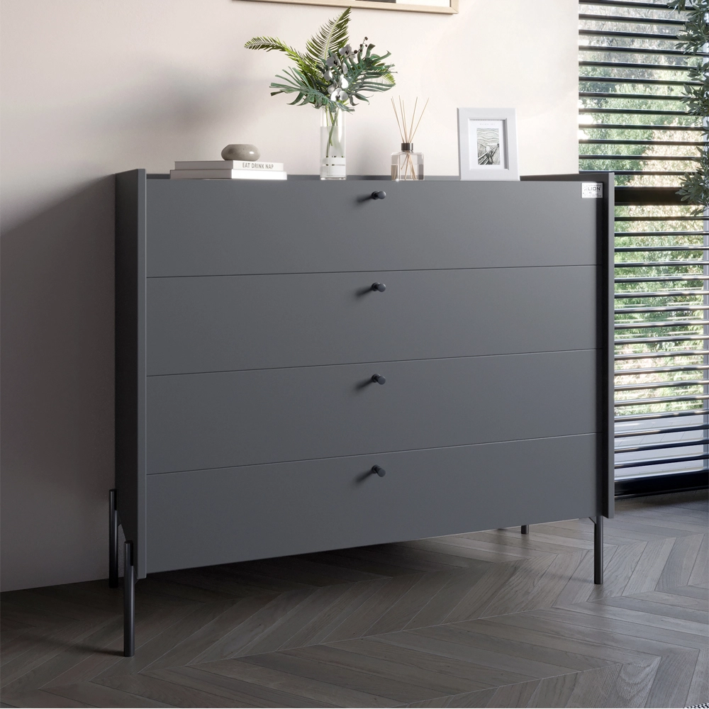 Комод із 4 шухлядами LION Wood з чорними ніжками 100х90х45 см Антрацит (LION-042972)