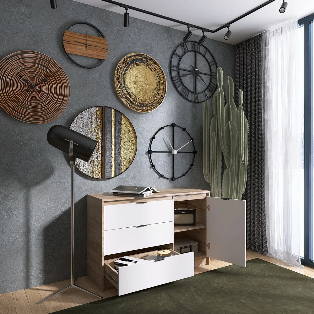 Комод із дверима та 3-ма шухлядами Еверест Сіті-1150 115,2х38х74,6 Дуб сонома/Білий (DTM-071100)
