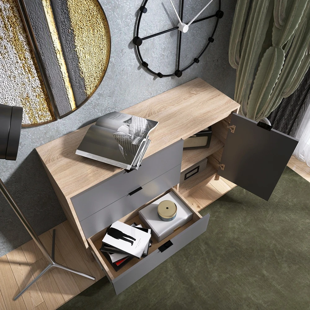 Комод із дверима та 3-ма шухлядами Еверест Сіті-1150 115,2х38х74,6 Дуб сонома/Графіт (DTM-071099)