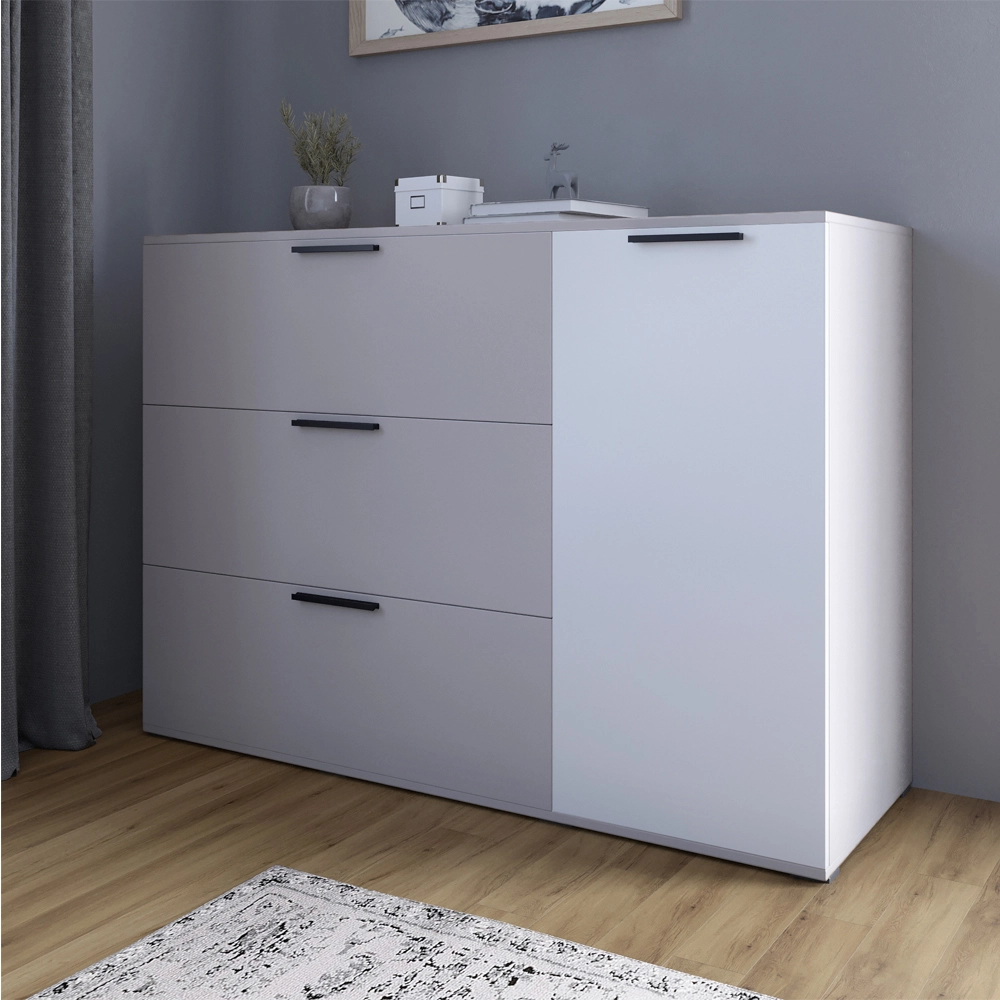 Комод LION Краш з трьома висувними шухлядами та закритими полицями Кашемір/Німфея альба (LION-044146