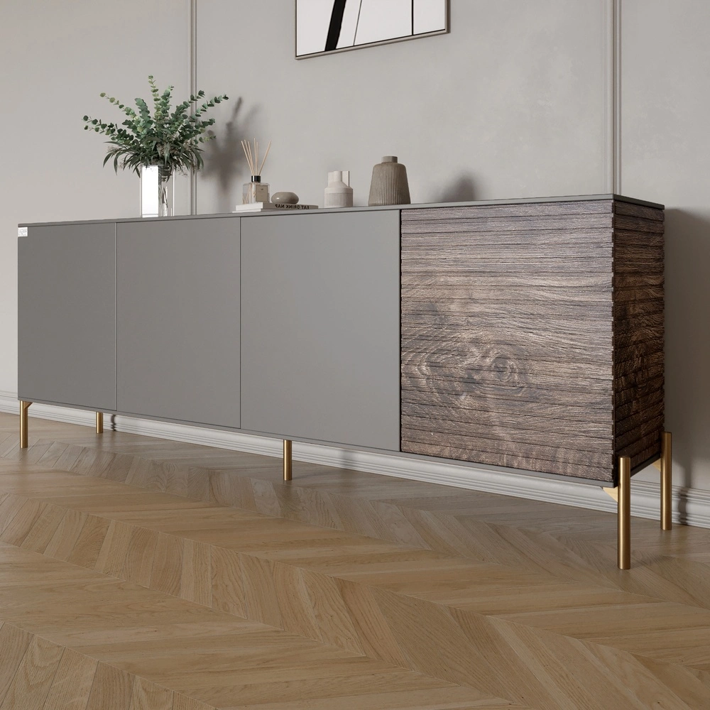 Комод LION Грэй — это не просто мебельный элемент, а стильный акцент вашего интерьера. Изготовлен из высококачественного ЛДСП SWISS KRONO, он сочетает в себе эстетику и надежность, что позволяет выдерживать механические нагрузки и воздействие влаги. Гладкий фасад с текстурными элементами и элегантные золотые металлические ножки придают комод легкости и современности, делая его идеальным выбором для любой комнаты — от спальни до рабочего кабинета.