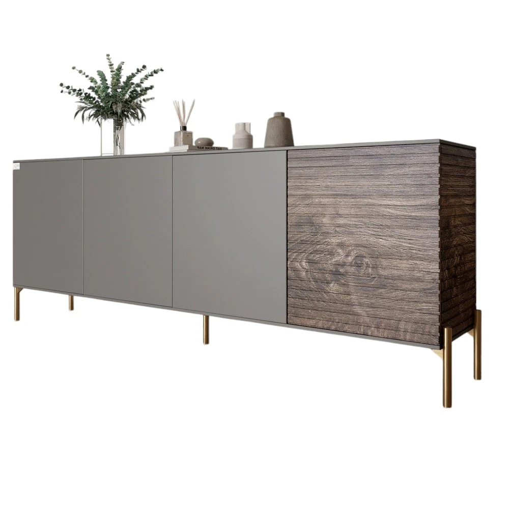 Комод на золотих металевих ніжках LION Грей 204x38x76,5 см Антрацит/Дерево (LION-042651)