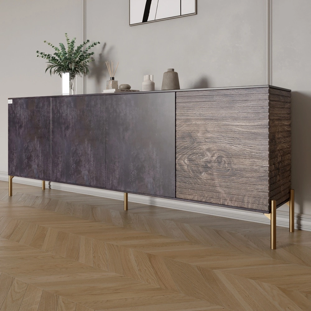 Комод на золотих металевих ніжках LION Грей 204x38x76,5 см Бетон темний/Дерево (LION-042664)