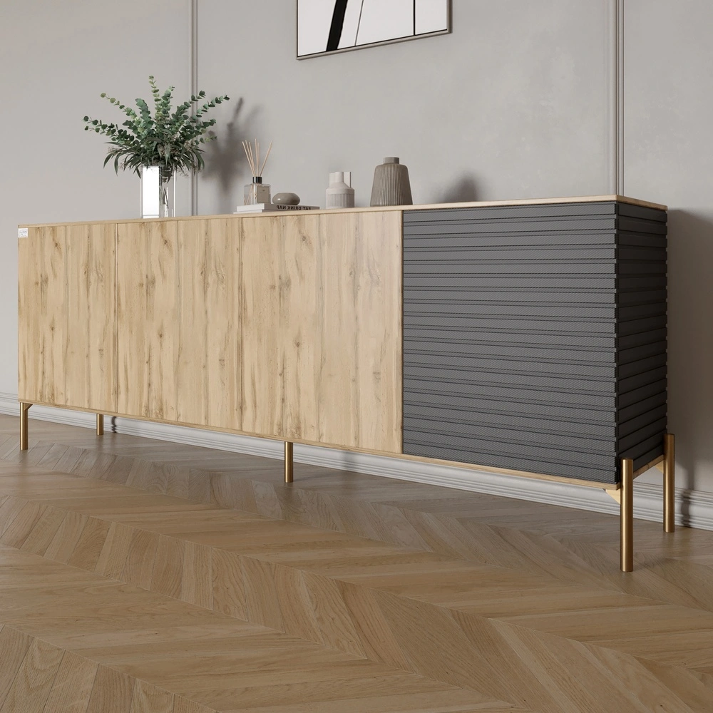 Комод на золотих металевих ніжках LION Грей 204x38x76,5 см Дуб Аппалачі/Асфальт (LION-042680)
