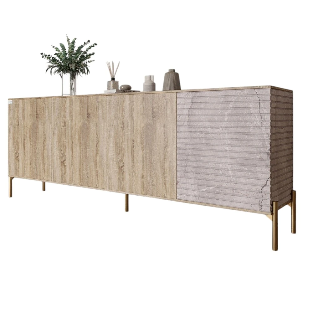 Комод на золотих металевих ніжках LION Грей 204x38x76,5 см Дуб сонома трюфель/Камінь (LION-042688)
