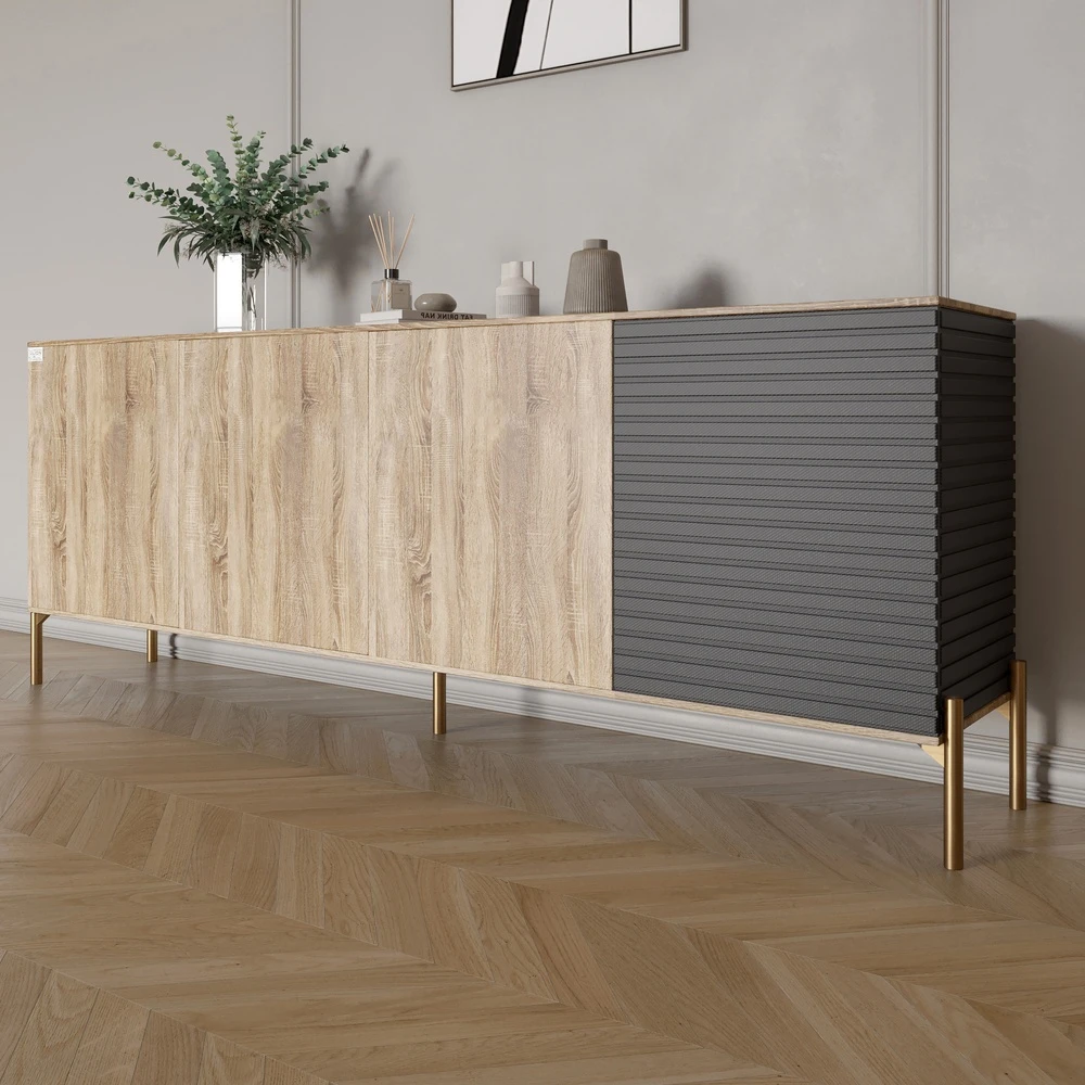 Комод на золотих металевих ніжках LION Грей 204x38x76,5 см Дуб сонома/Асфальт (LION-042669)