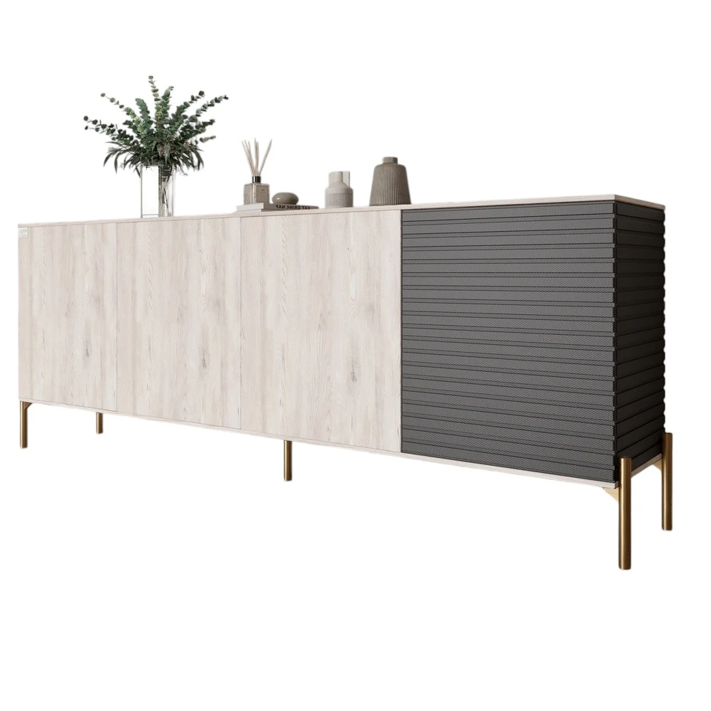 Комод на золотих металевих ніжках LION Грей 204x38x76,5 см Самоа Димчастий/Асфальт (LION-042679)