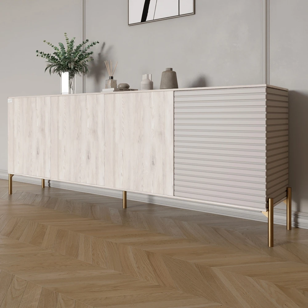 Комод на золотих металевих ніжках LION Грей 204x38x76,5 см Самоа Димчастий/Кашемір (LION-042650)