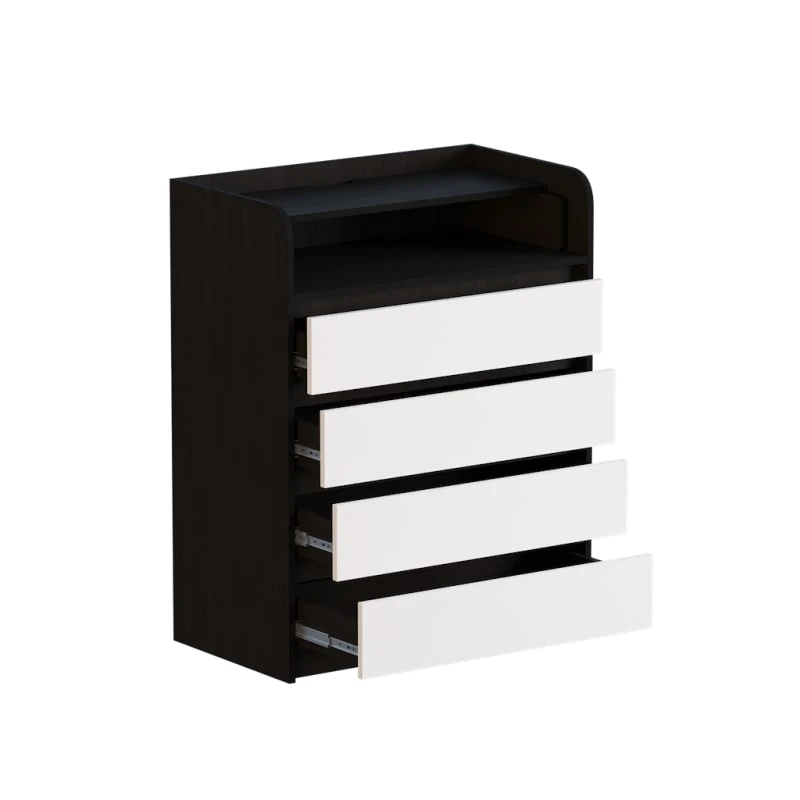 Його міцна конструкція, виготовлена з якісних матеріалів, гарантує довговічність, а зручні ящики на роликових напрямних забезпечують легке та плавне відкривання. Елегантний вигляд комода робить його ідеальним доповненням до будь-якої кімнати, чи то спальня, чи дитяча.