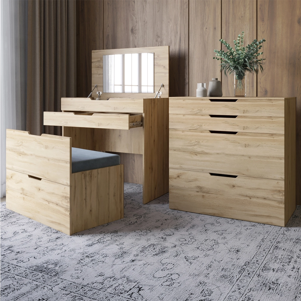 Комод-трюмо із дзеркалом, нішею під сидінням та шухлядою LION Азія Дуб Аппалачі (LION-041667)