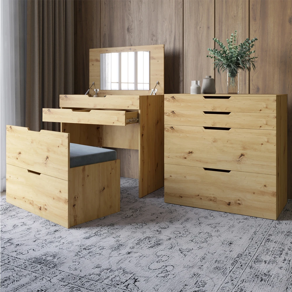 Мы знаем, как важно иметь все под рукой. Именно поэтому комод оборудован просторным ящиком для хранения ваших вещей и нишей под сиденьем, что позволяет удобно организовать пространство. Вы сможете легко хранить косметику, аксессуары или даже книги, сохраняя порядок в вашей комнате.