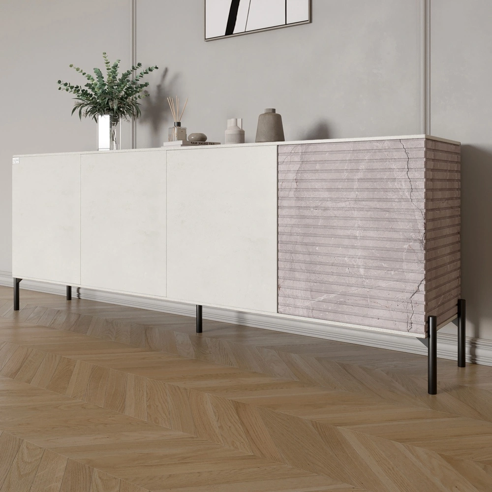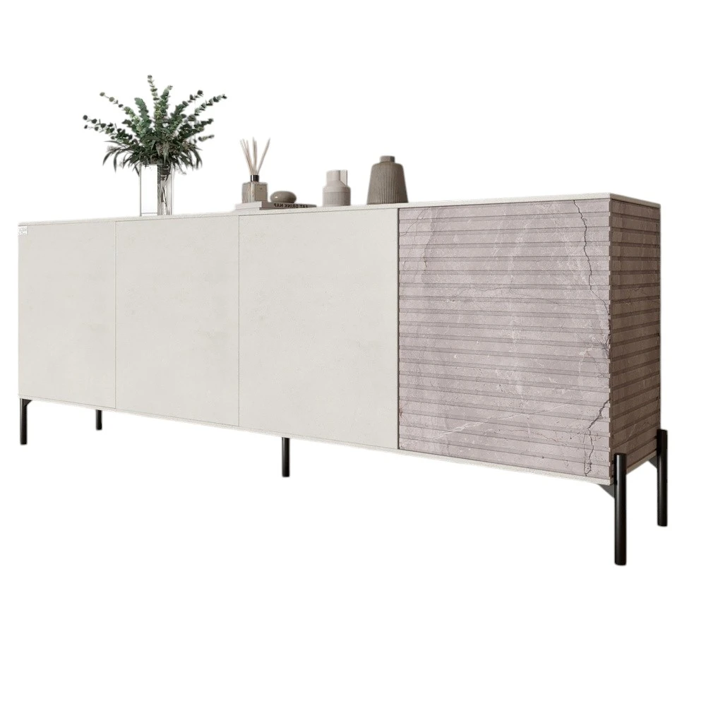 Комод у вітальню на чорних металевих ніжках LION Грей 204x38x76,5 см Бетон Style/Камінь (LION-042615