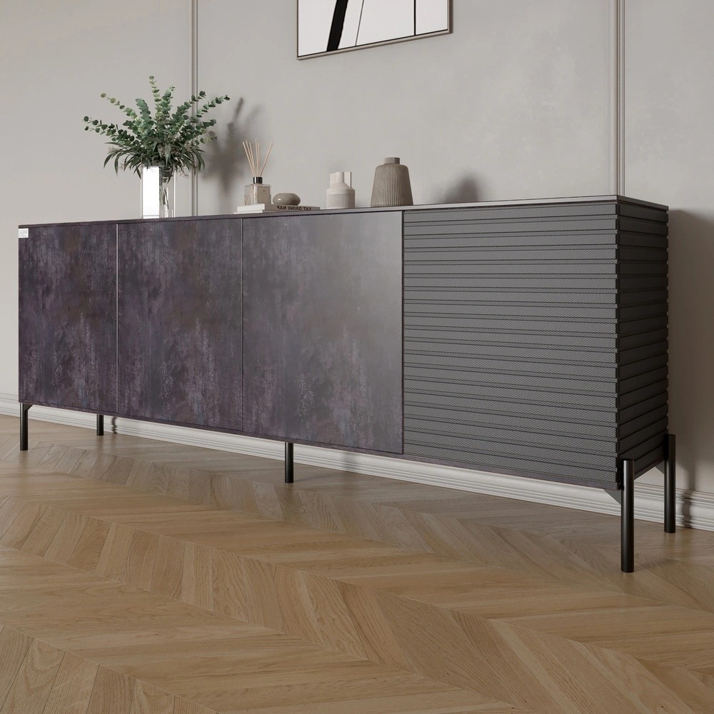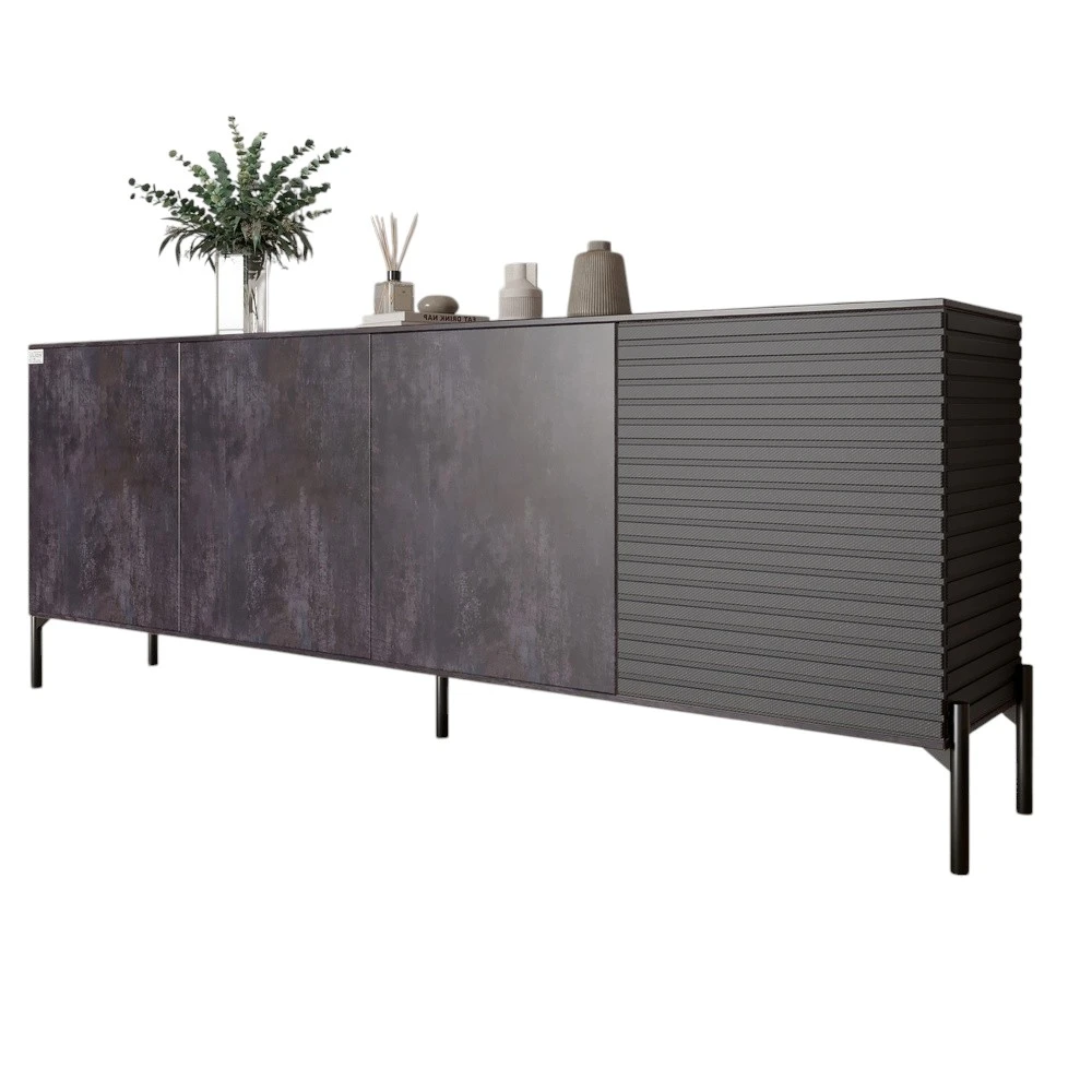 Комод у вітальню на чорних металевих ніжках LION Грей 204x38x76,5 см Бетон темний/Асфальт (LION-0424