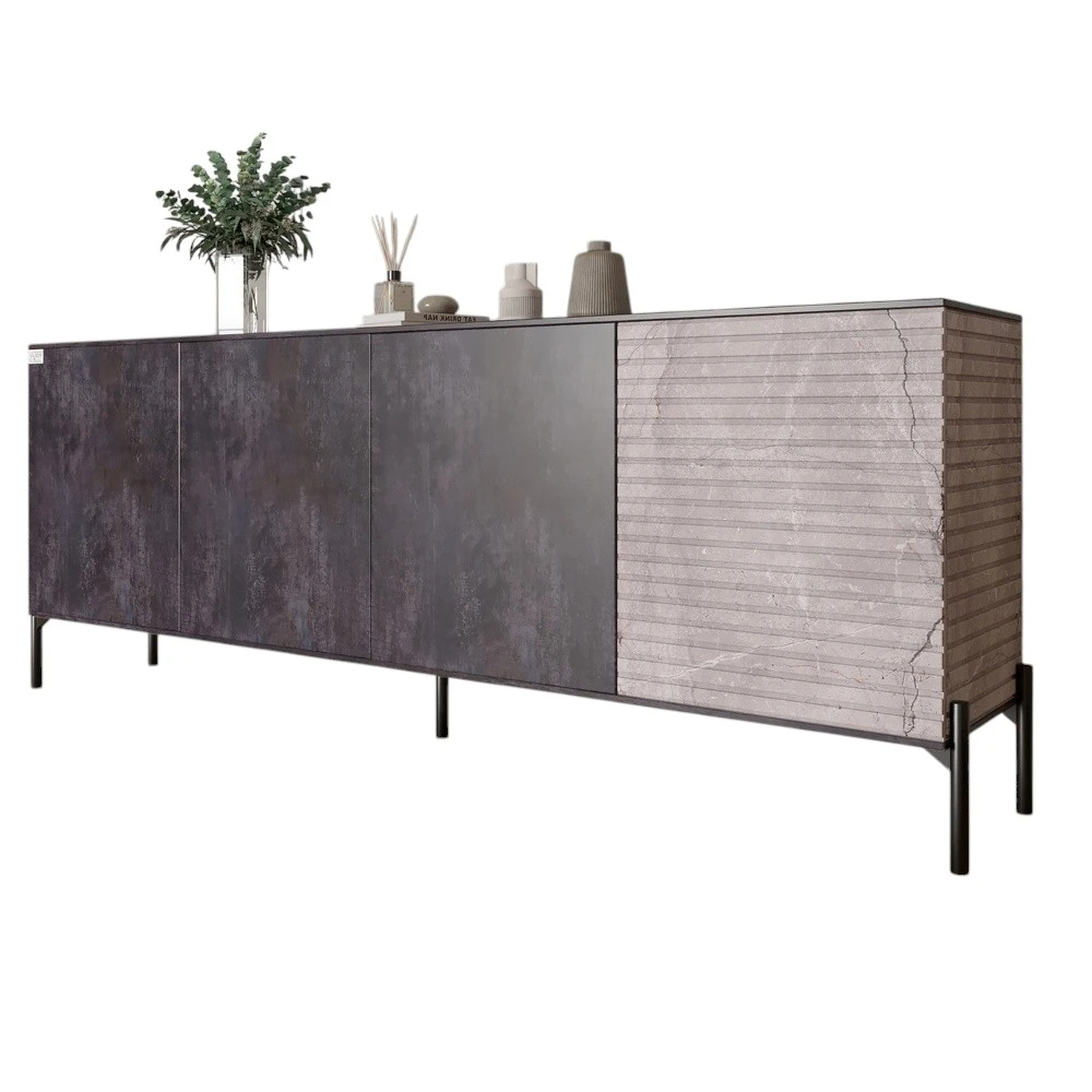 Комод у вітальню на чорних металевих ніжках LION Грей 204x38x76,5 см Бетон темний/Камінь (LION-04261