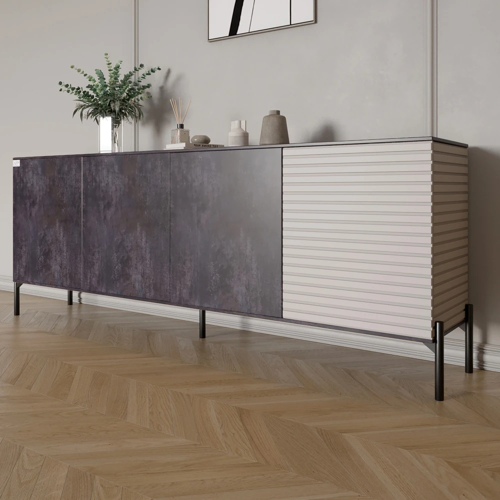 Комод у вітальню на чорних металевих ніжках LION Грей 204x38x76,5 см Бетон темний/Кашемір (LION-0426