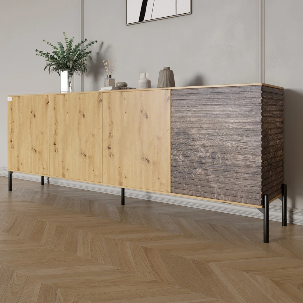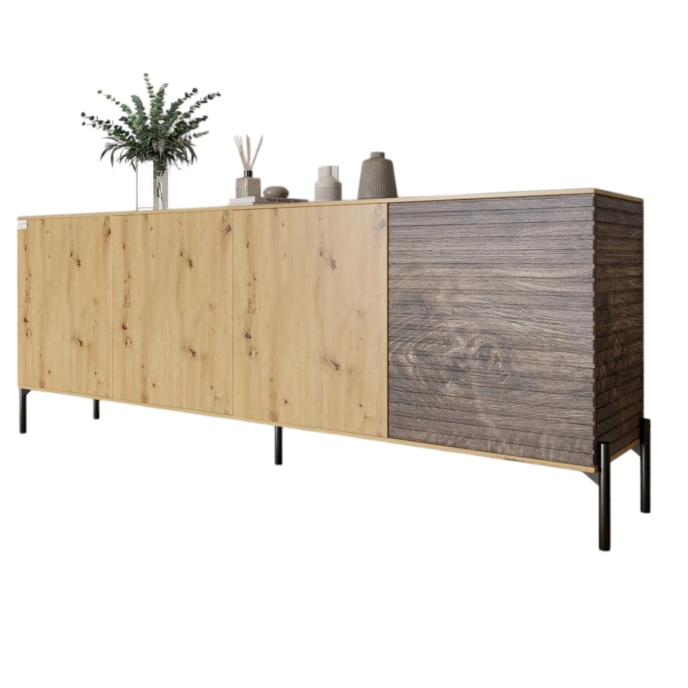 Комод у вітальню на чорних металевих ніжках LION Грей 204x38x76,5 см Дуб Артизан/Дерево (LION-042513