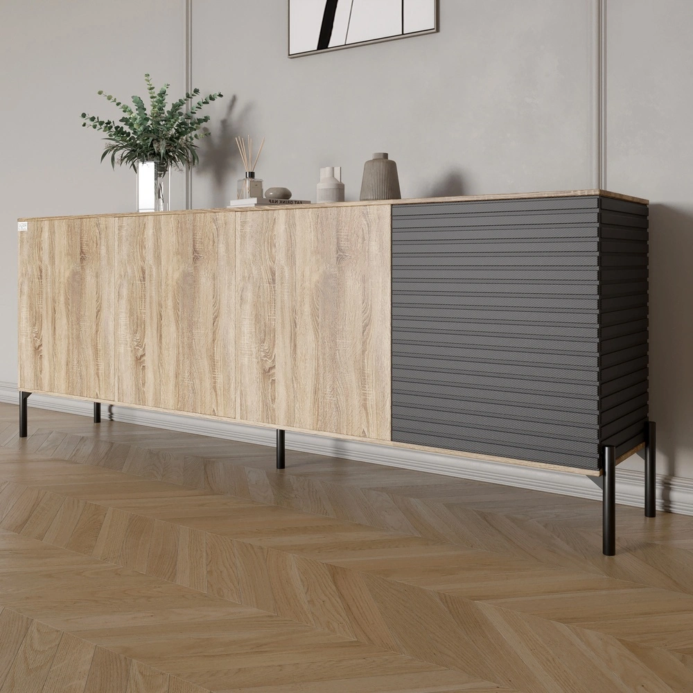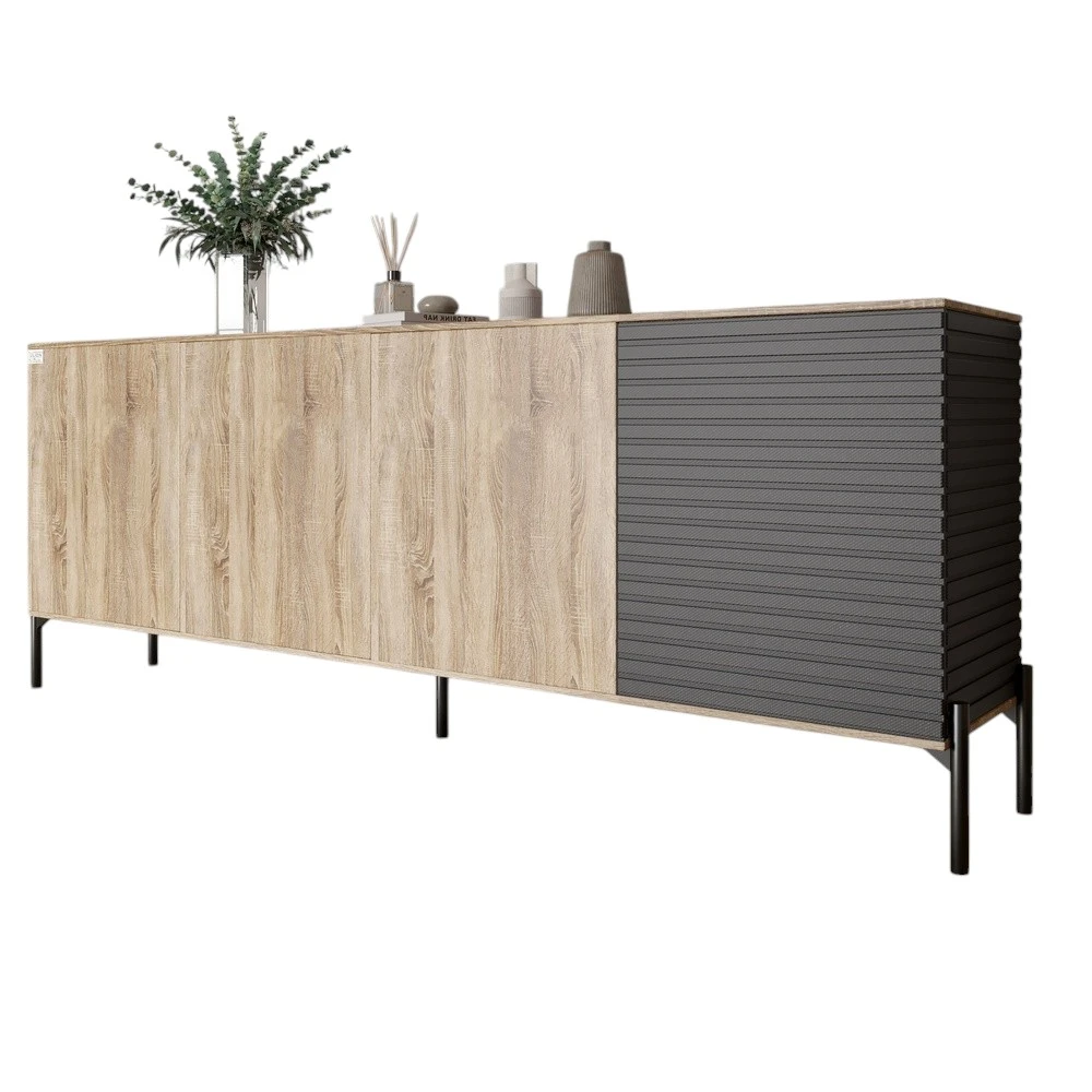Комод у вітальню на чорних металевих ніжках LION Грей 204x38x76,5 см Дуб сонома/Асфальт (LION-042458