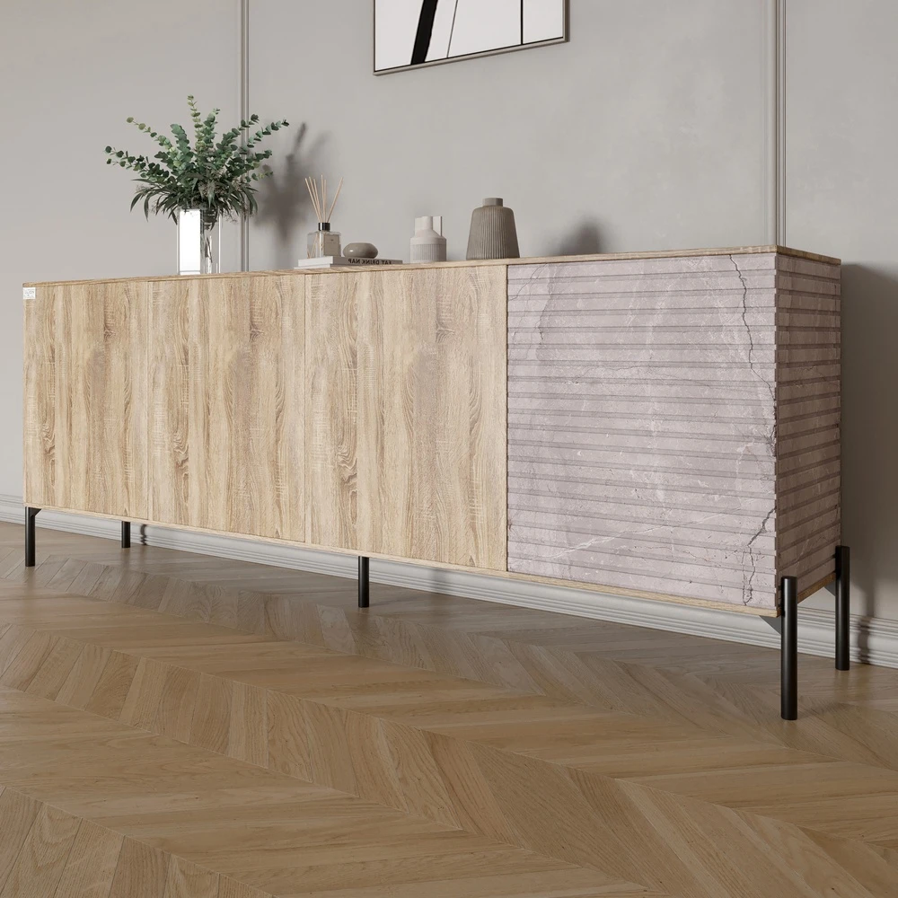 Комод у вітальню на чорних металевих ніжках LION Грей 204x38x76,5 см Дуб сонома/Камінь (LION-042609)